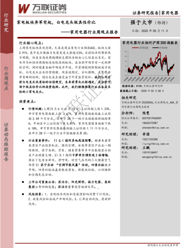 【万联证券】【20200511】20200511-万联证券-家用电器行业周观点报告:家电板块异军突起,白电龙头极具性价比-8页