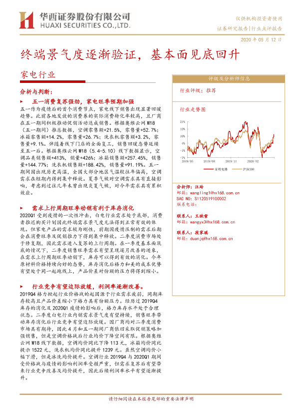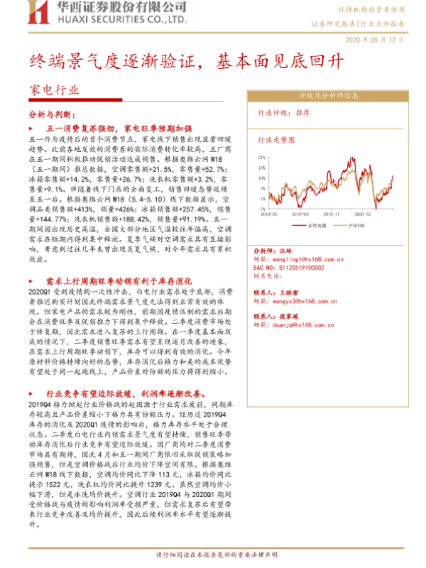 【华西证券】【20200512】20200512-华西证券-家电行业点评报告:终端景气度逐渐验证,基本面见底回升-4页