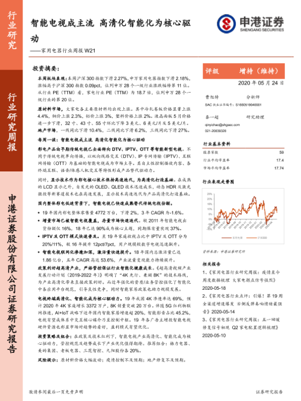 【申港证券】【20200524】家用电器行业周报W21:智能电视成主流 高清化智能化为核心驱动-21页