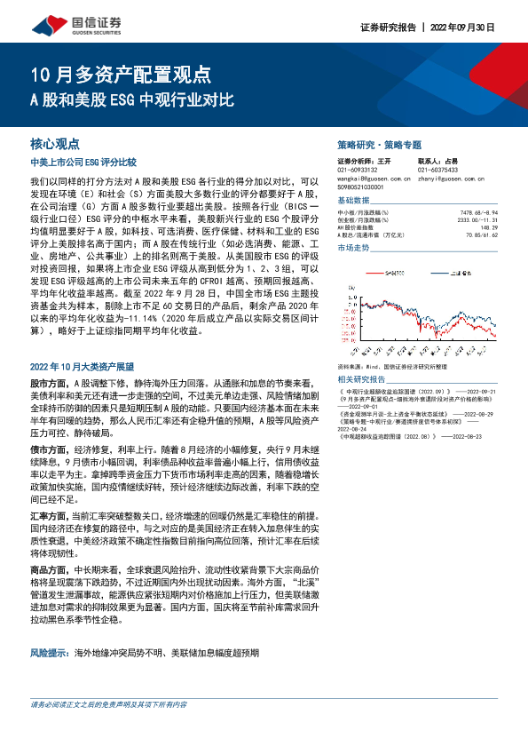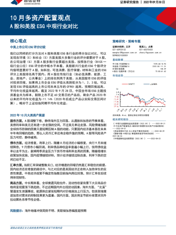 【国信证券】【20220930】10月多资产配置观点:A股和美股ESG中观行业对比-23页