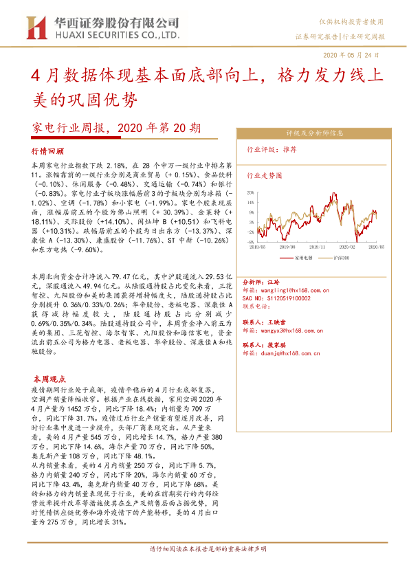 【华西证券】【20200524】2020年第20期家电行业周报:4月数据体现基本面底部向上,格力发力线上美的巩固优势-20页