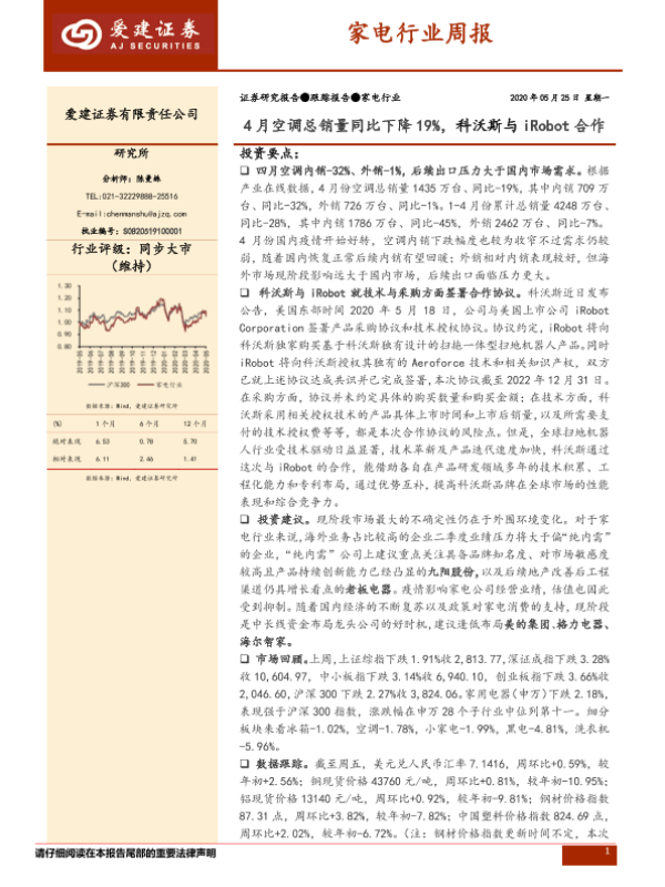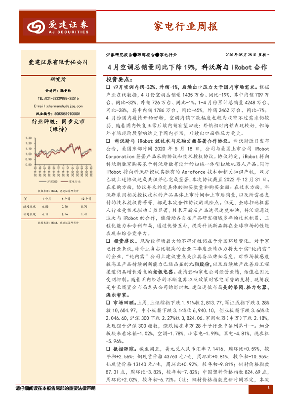 【爱建证券】【20200525】家电行业周报:4月空调总销量同比下降19%,科沃斯与iRobot合作-11页