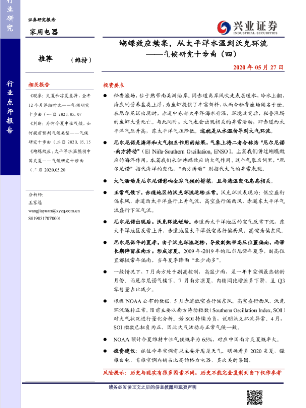 【兴业证券】【20200527】蝴蝶效应续集,从太平洋水温到沃克环流 ——气候研究十步曲(四)-14页