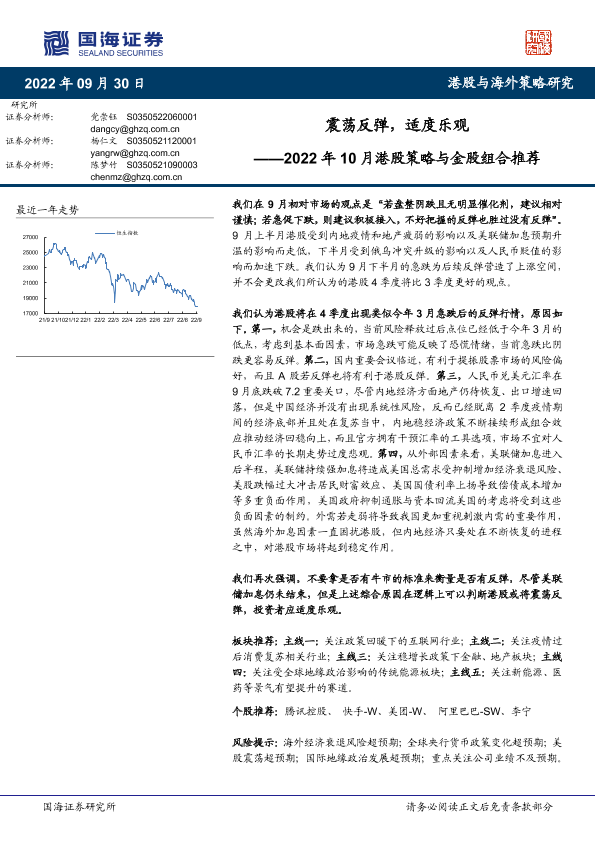 【国海证券】【20220930】2022年10月港股策略与金股组合推荐:震荡反弹,适度乐观-35页
