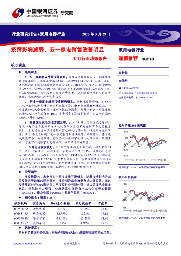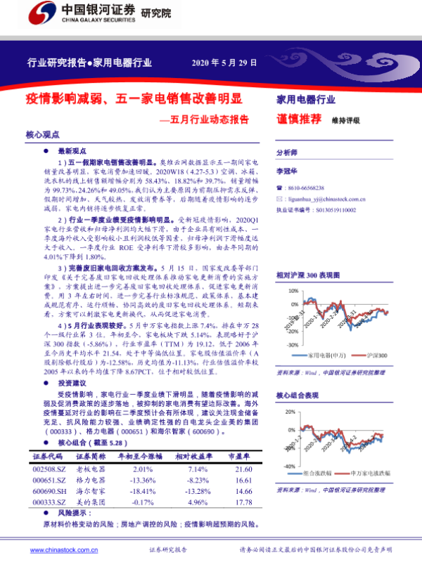 【银河证券】【20200529】20200529-中国银河-家用电器五月行业动态报告:疫情影响减弱、五一家电销售改善明显-32页