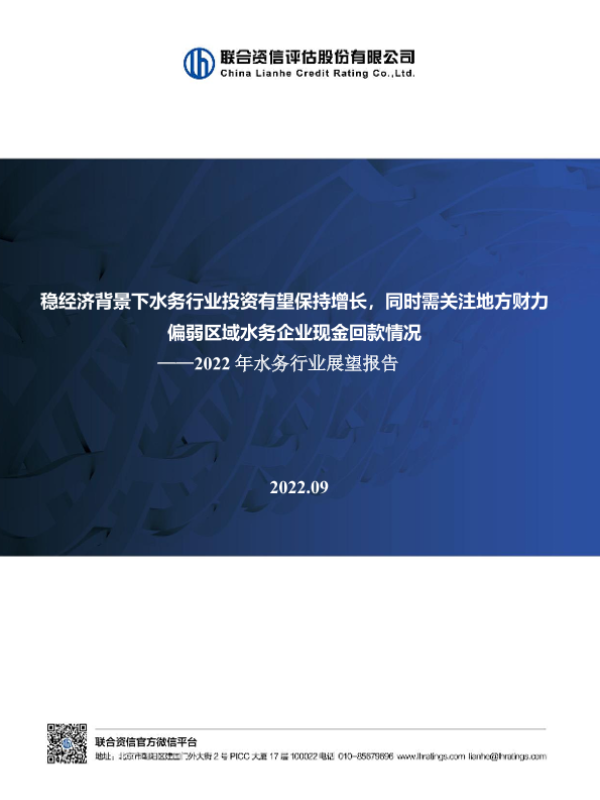 【联合资信】【202209】稳经济背景下水务行业投资有望保持增长,同时需关注地方财力偏弱区域水务企业现金回款情况-33页