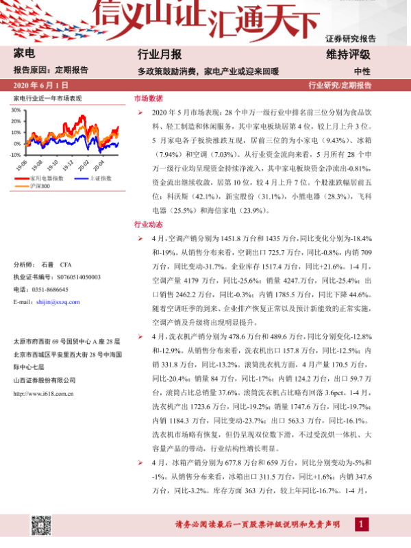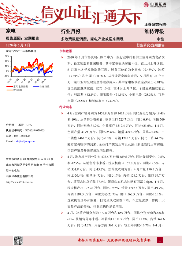 【山西证券】【20200601】家电行业月报:多政策鼓励消费,家电产业或迎来回暖-13页