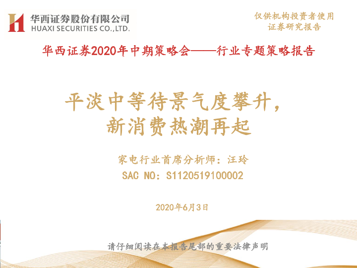 【华西证券】【20200603】2020年中期策略会——行业专题策略报告:平淡中等待景气度攀升,新消费热潮再起-29页