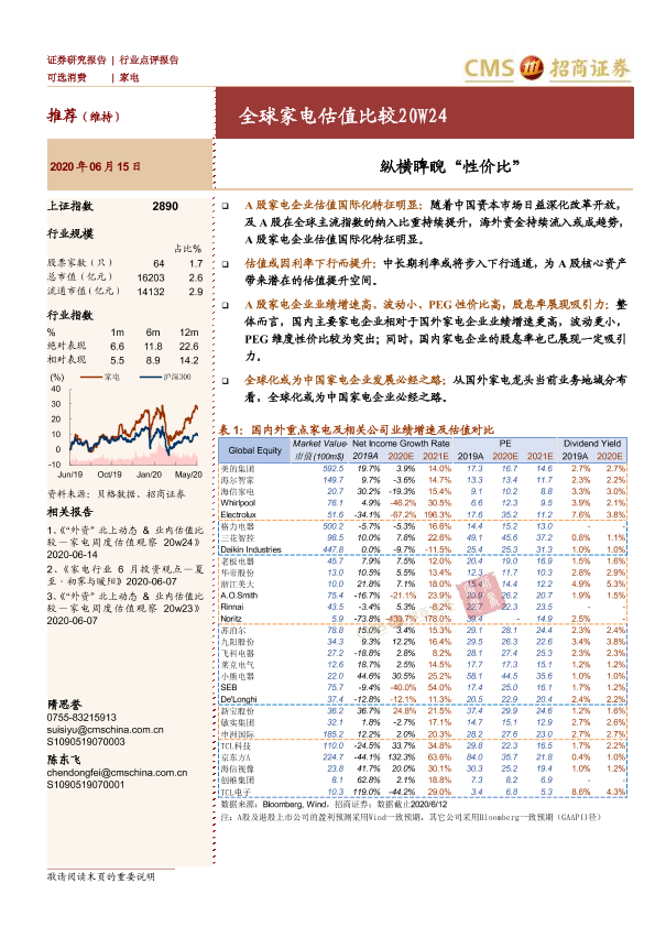 【海通证券】【20200615】全球家电估值比较20W24:纵横睥睨“性价比”-5页