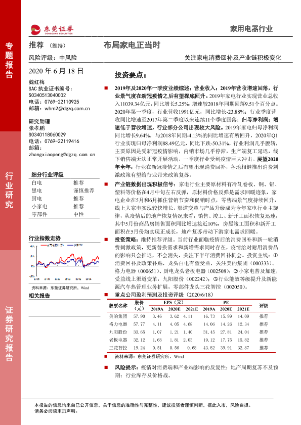 【东莞证券】【20200618】布局家电正当时:关注家电消费回补及产业链积极变化-17页