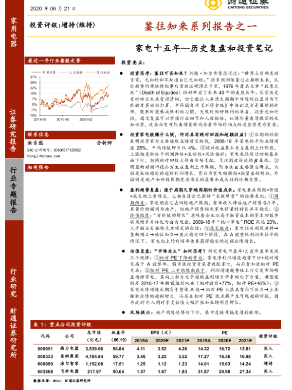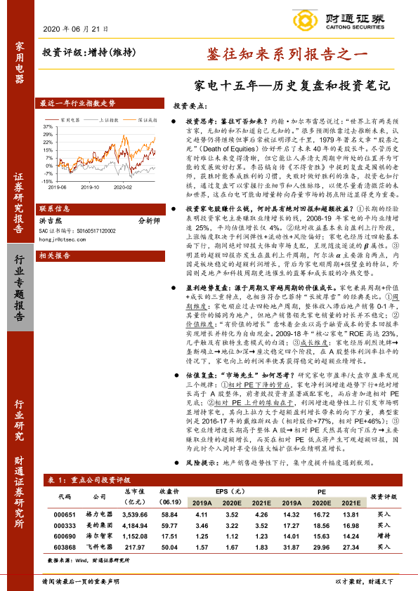 【财通证券】【20200621】鉴往知来系列报告之一:家电十五年—历史复盘和投资笔记-22页