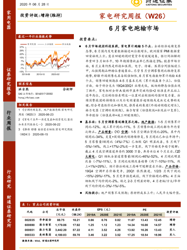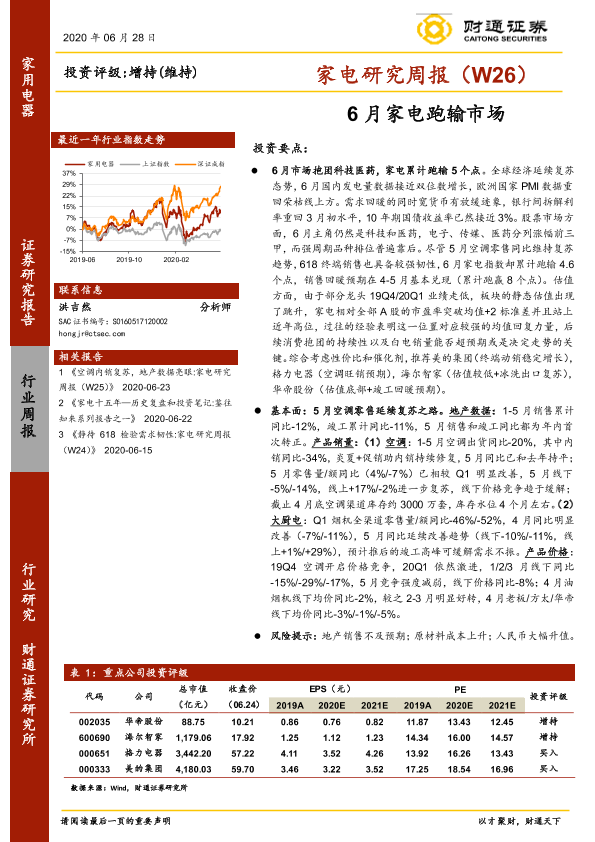 【财通证券】【20200628】20200628-财通证券-家电研究周报(W26):6月家电跑输市场-20页