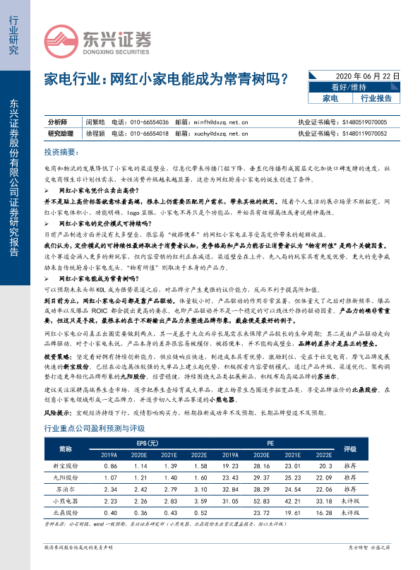 【东兴证券】【20200622】家电行业:网红小家电能成为常青树吗?-19页