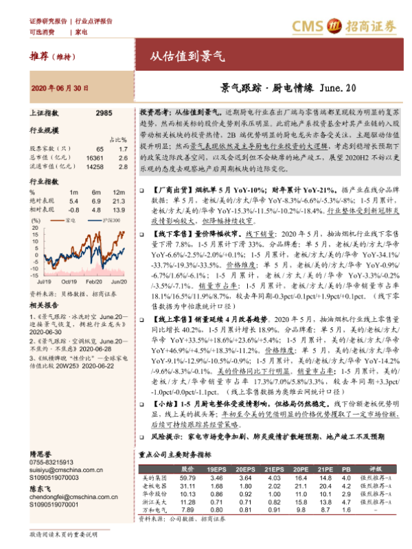 【海通证券】【20200630】景气跟踪·厨电情缘:从估值到景气-5页