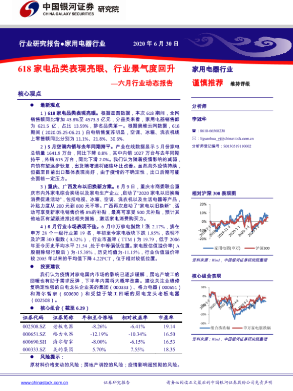 【银河证券】【20200630】家用电器行业:六月行业动态报告:618家电品类表现亮眼、行业景气度回升-32页