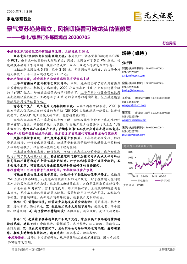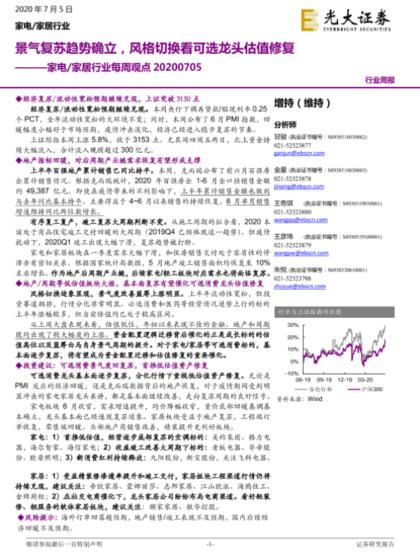 【光大证券】【20200705】家电 家居行业每周观点:景气复苏趋势确立,风格切换看可选龙头估值修复-10页