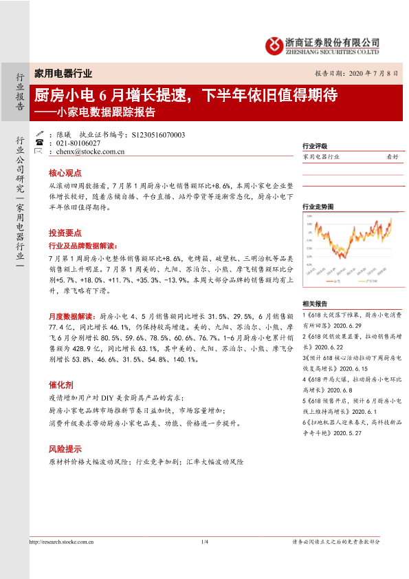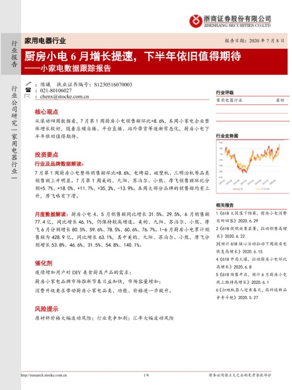 【浙商证券】【20200708】20200708-浙商证券-小家电数据跟踪报告:厨房小电6月增长提速,下半年依旧值得期待-4页