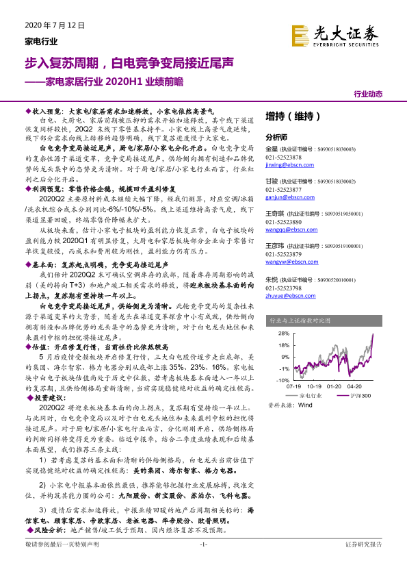 【光大证券】【20200712】家电家居行业2020H1业绩前瞻:步入复苏周期,白电竞争变局接近尾声-27页