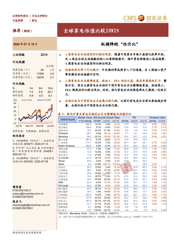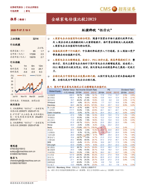 【海通证券】【20200719】全球家电估值比较20W29:纵横睥睨“性价比”-5页