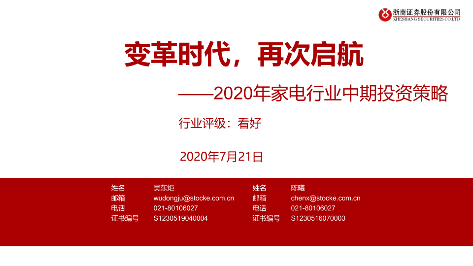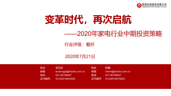 【浙商证券】【20200721】变革时代,再次启航——2020年家电行业中期投资策略-29页