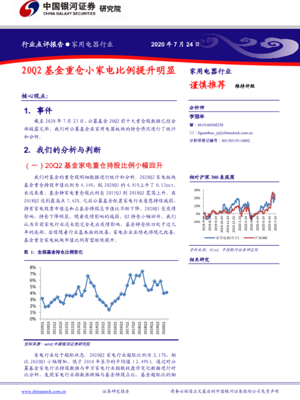 【银河证券】【20200724】家用电器行业:20Q2基金重仓小家电比例提升明显-8页