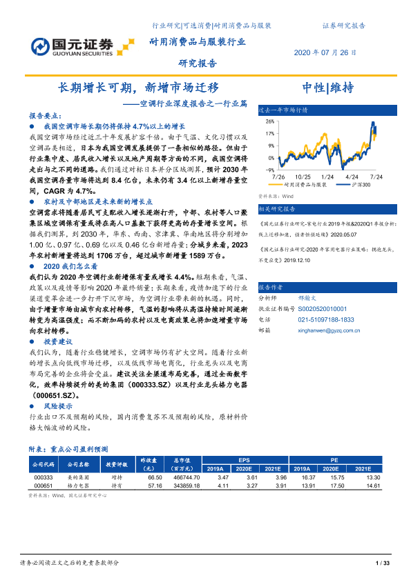 【国元证券】【20200726】空调行业深度报告之一行业篇:长期增长可期,新增市场迁移-33页