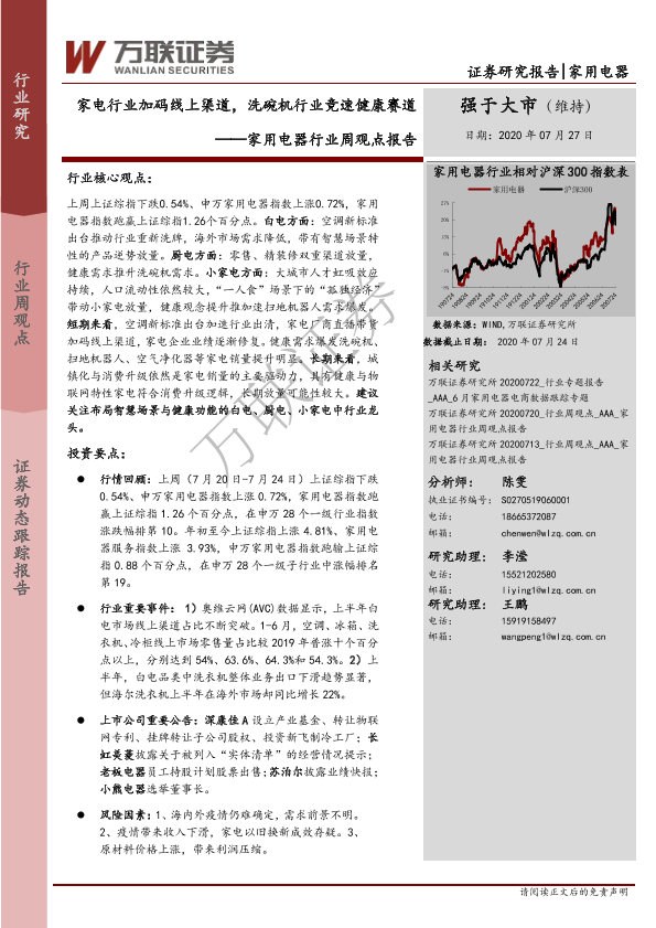 【万联证券】【20200727】20200727-万联证券-家用电器行业周观点报告:家电行业加码线上渠道,洗碗机行业竞速健康赛道-9页