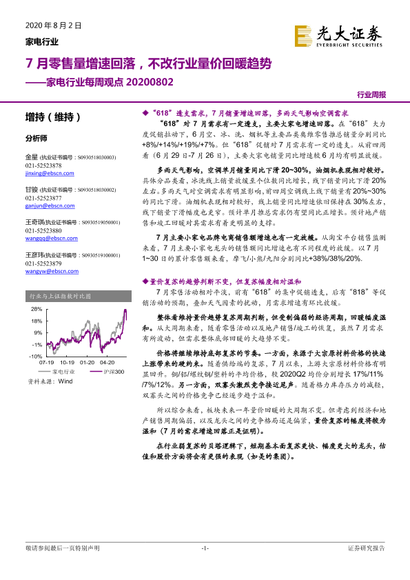【光大证券】【20200802】家电行业每周观点:7月零售量增速回落,不改行业量价回暖趋势-5页