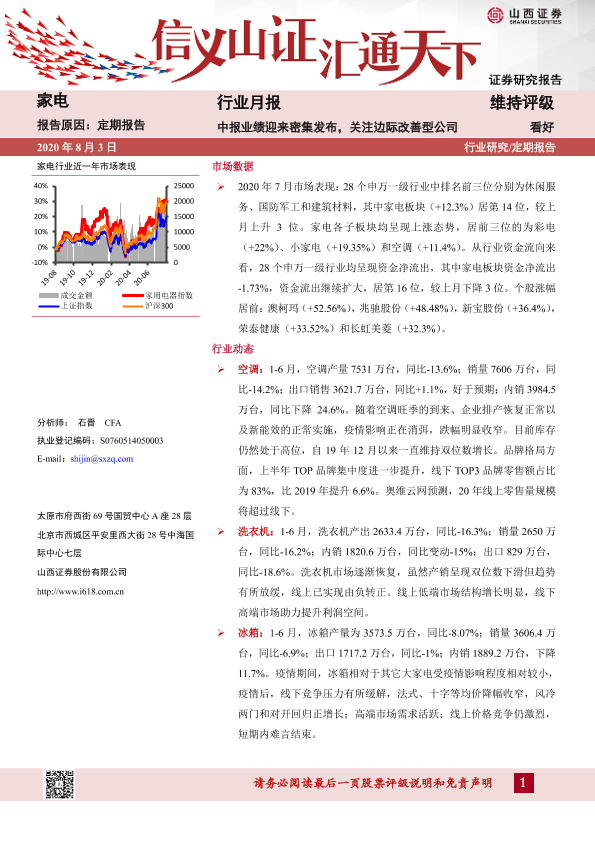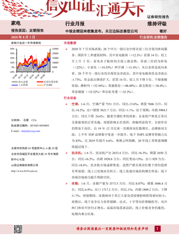 【山西证券】【20200803】20200803-山西证券-家电行业月报:中报业绩迎来密集发布,关注边际改善型公司-14页