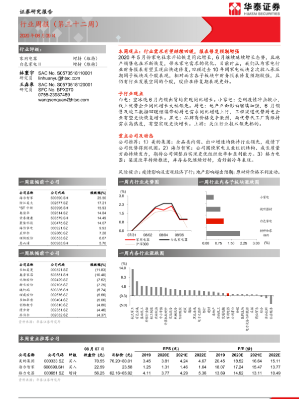 【华泰证券】【20200809】家用电器行业周报(第三十二周)-14页