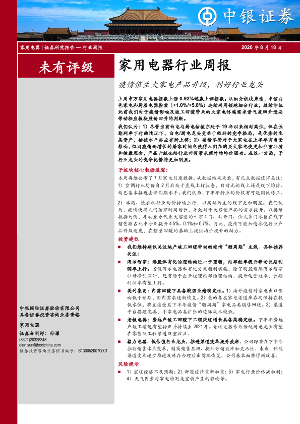 【中银证券】【20200818】家用电器行业周报:疫情催生大家电产品升级,利好行业龙头-28页