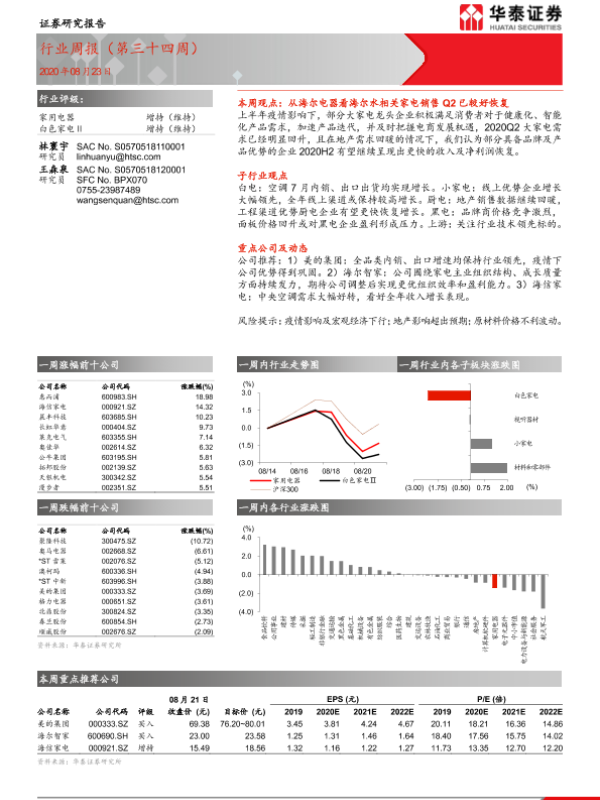 【华泰证券】【20200823】20200823-华泰证券-家用电器行业周报(第三十四周)-14页