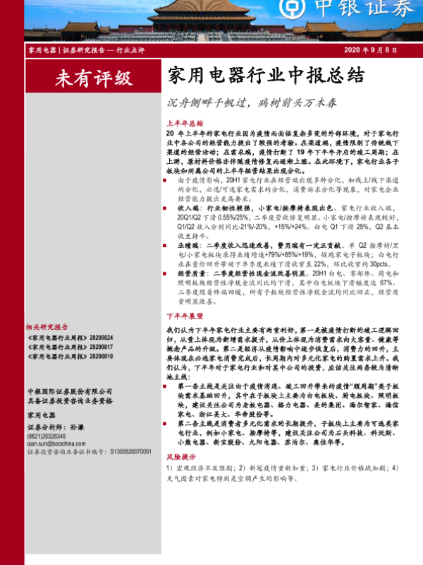 【中银证券】【20200908】家用电器行业中报总结:沉舟侧畔千帆过,病树前头万木春-26页