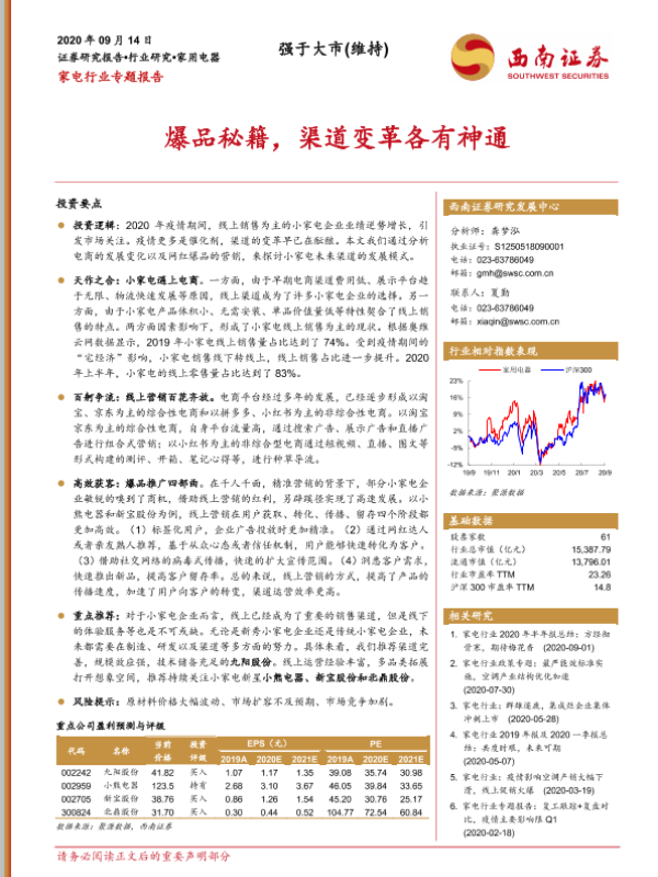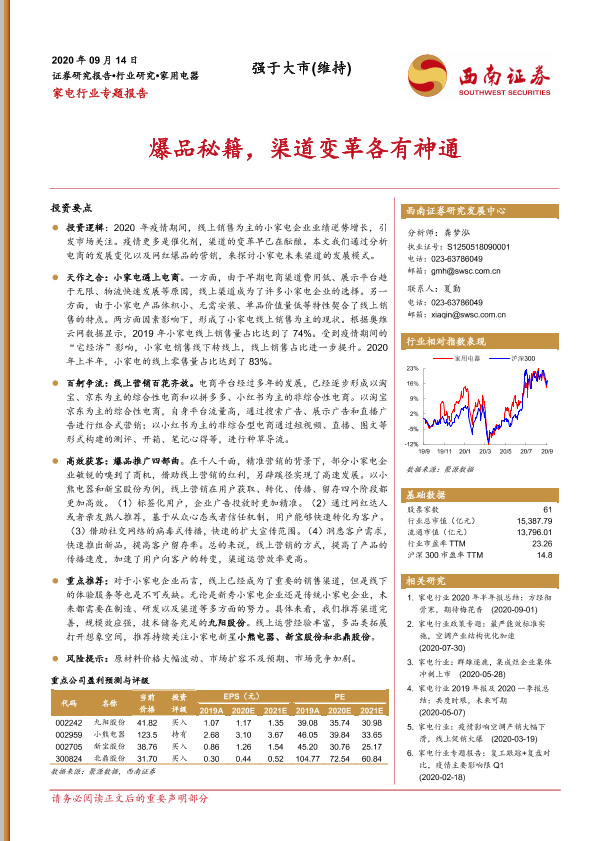 【西南证券】【20200914】家电行业专题报告:爆品秘籍,渠道变革各有神通-18页