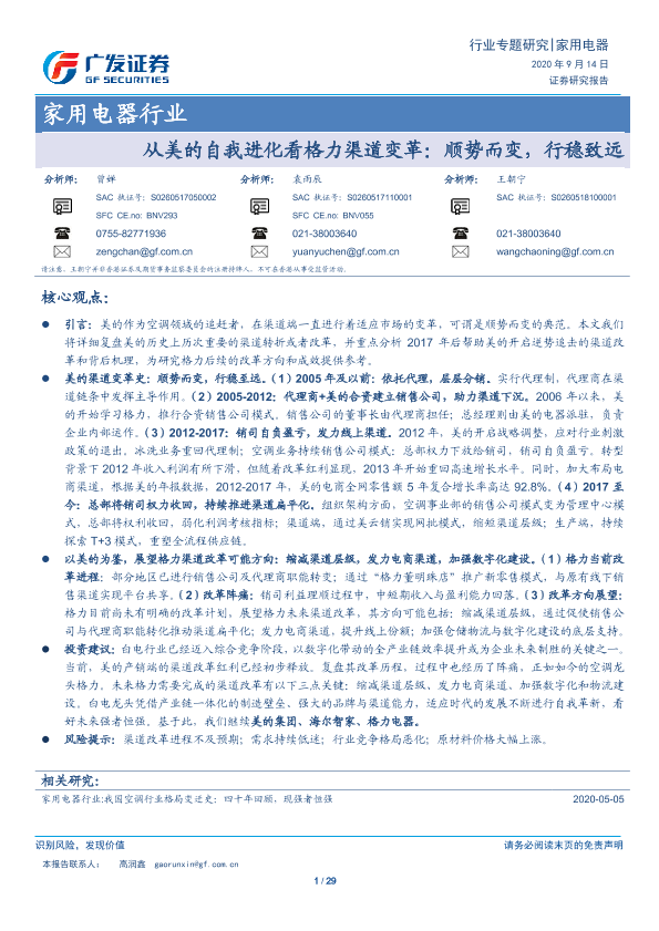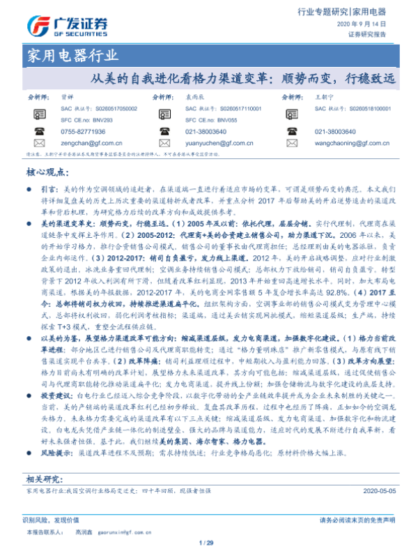 【广发证券】【20200914】从美的自我进化看格力渠道变革:顺势而变,行稳致远-29页