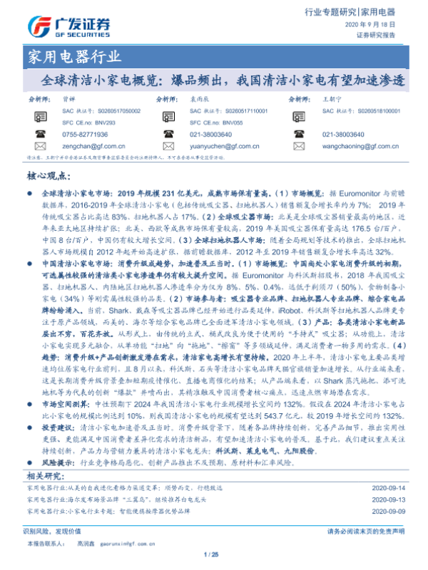【广发证券】【20200918】全球清洁小家电概览:爆品频出,我国清洁小家电有望加速渗透-25页