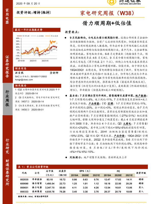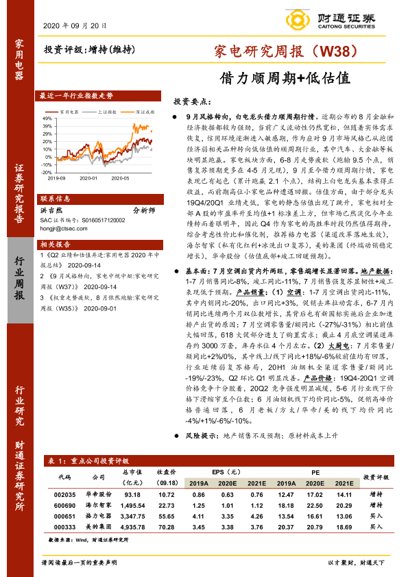 【财通证券】【20200920】20200920-财通证券-家电研究周报(W38):借力顺周期+低估值-20页