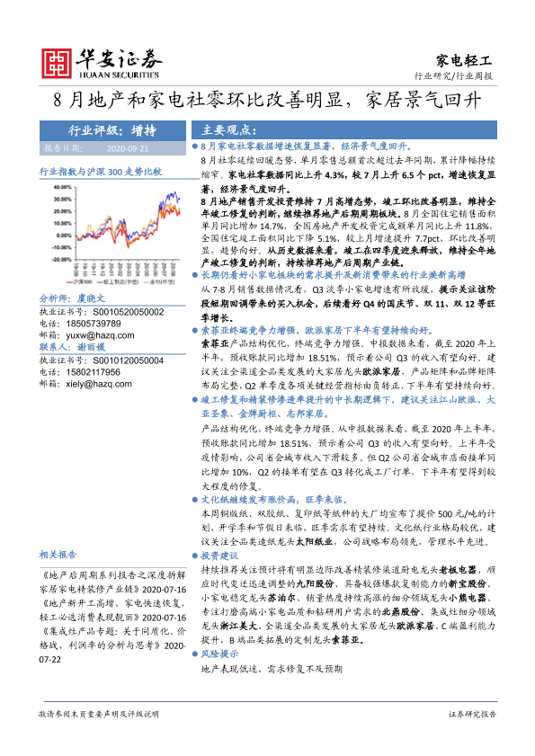 【华安证券】【20200921】20200921-华安证券-家电轻工行业周报:8月地产和家电社零环比改善明显,家居景气回升-19页