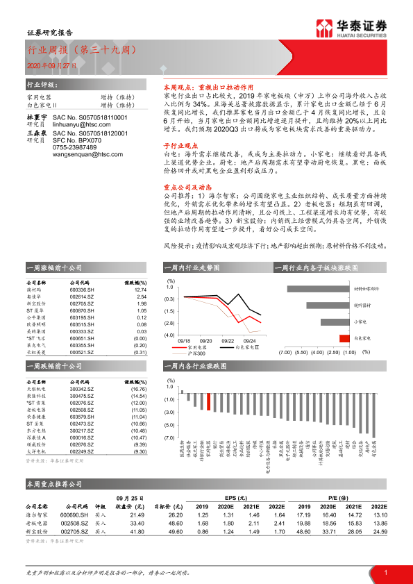 【华泰证券】【20200927】20200927-华泰证券-家用电器行业周报(第三十九周)-13页