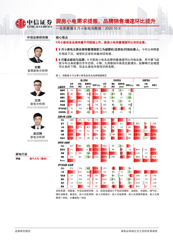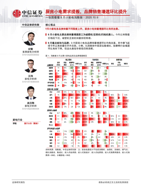 【中信证券】【20201009】一张图看懂9月小家电淘数据:厨房小电需求提振,品牌销售增速环比提升-2页