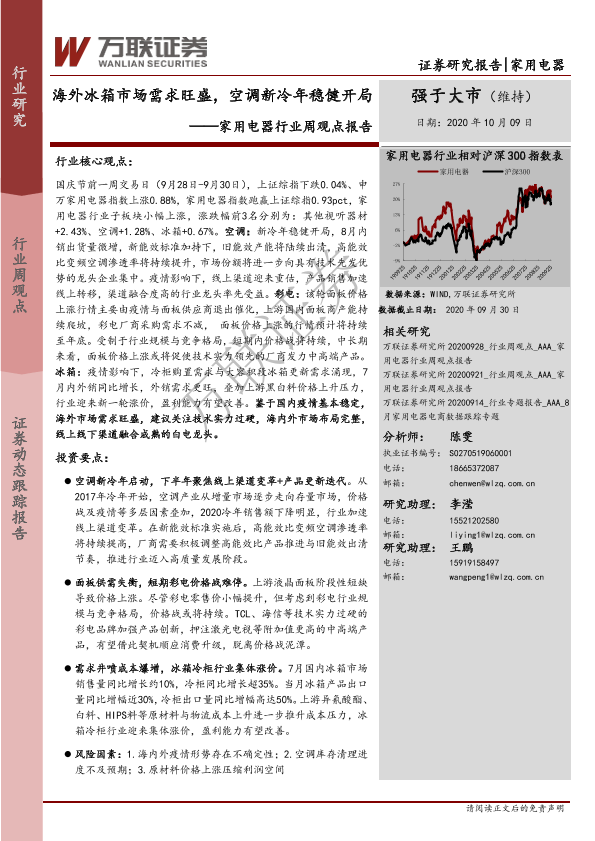 【万联证券】【20201009】家用电器行业周观点报告:海外冰箱市场需求旺盛,空调新冷年稳健开局-14页
