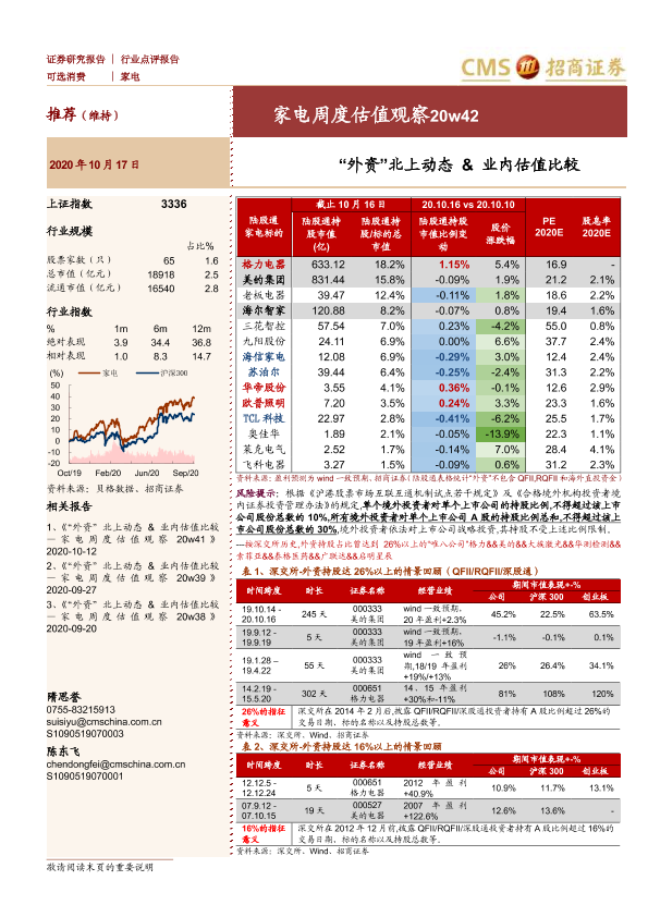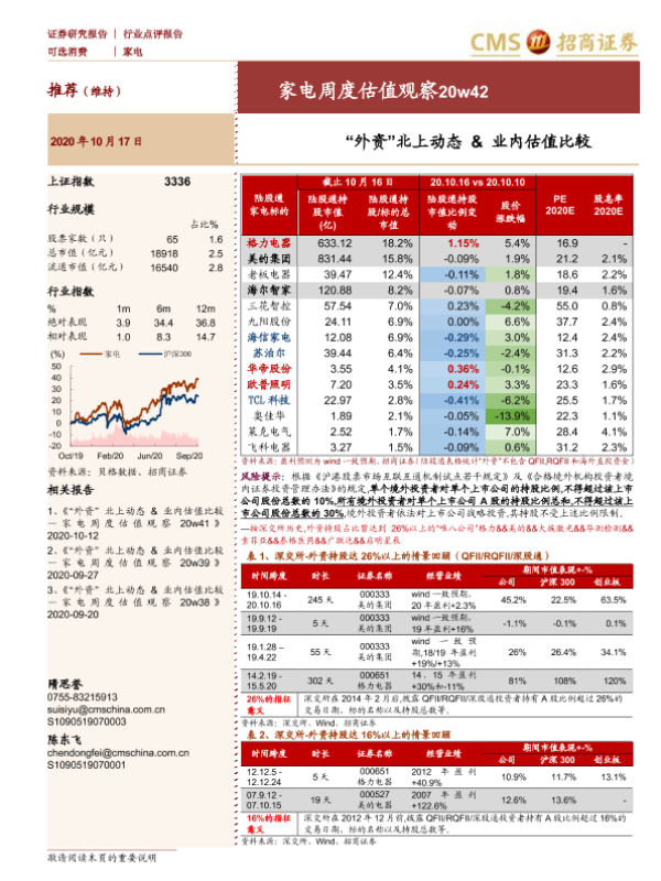 【海通证券】【20201017】家电周度估值观察20w42:“外资”北上动态&业内估值比较-3页