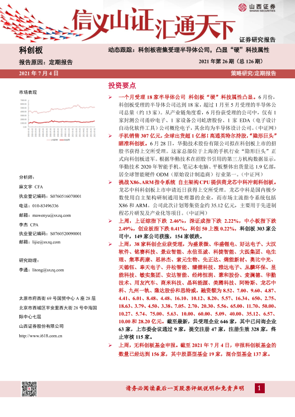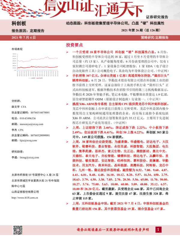 【山西证券】【20210704】科创板动态跟踪2021年第26期(总126期):科创板密集受理半导体公司,凸显“硬”科技属性-26页