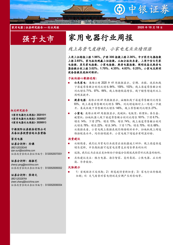 【中银证券】【20201018】家用电器行业周报:线上高景气度持续,小家电龙头业绩预涨-28页