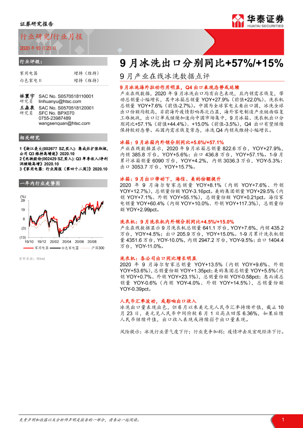 冰洗数据 出口增长 华泰证券 家电行业 白色家电
