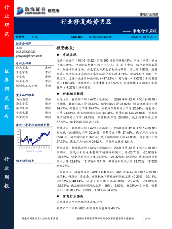 【渤海证券】【20201023】家电行业周报:行业修复趋势明显-14页