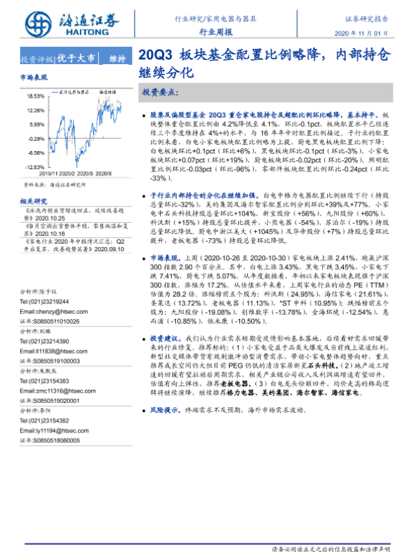 【海通证券】【20201101】家用电器与器具行业周报:20Q3板块基金配置比例略降,内部持仓继续分化-8页