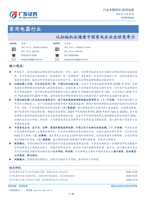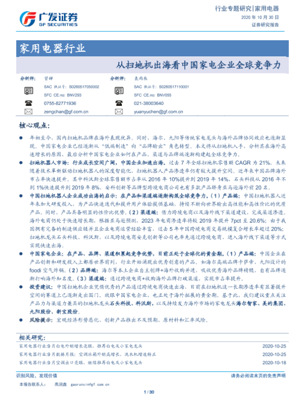 【广发证券】【20201030】从扫地机出海看中国家电企业全球竞争力-30页