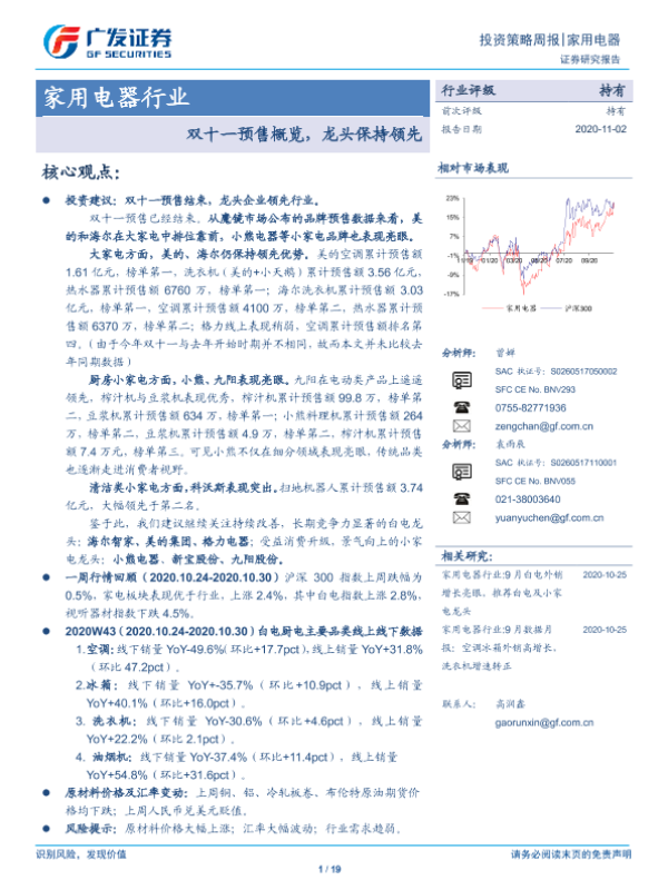 【广发证券】【20201102】家用电器行业投资策略周报:双十一预售概览,龙头保持领先-19页