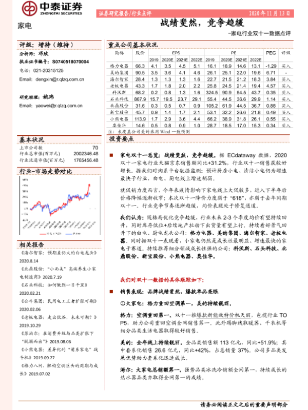 【中泰证券】【20201113】家电行业双十一数据点评:战绩斐然,竞争趋缓-6页